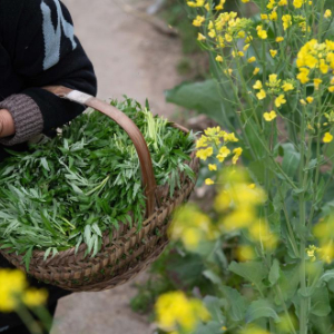 安徽省黄山市歙县坑口乡新安江畔,村民准备将采摘的野菜带回家。新华社记者 张端 摄