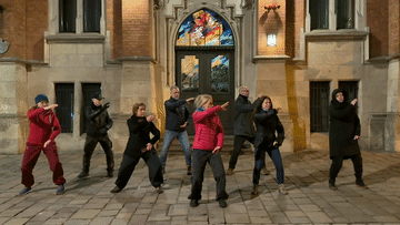 当人们以同一种身体语言迎向晨曦