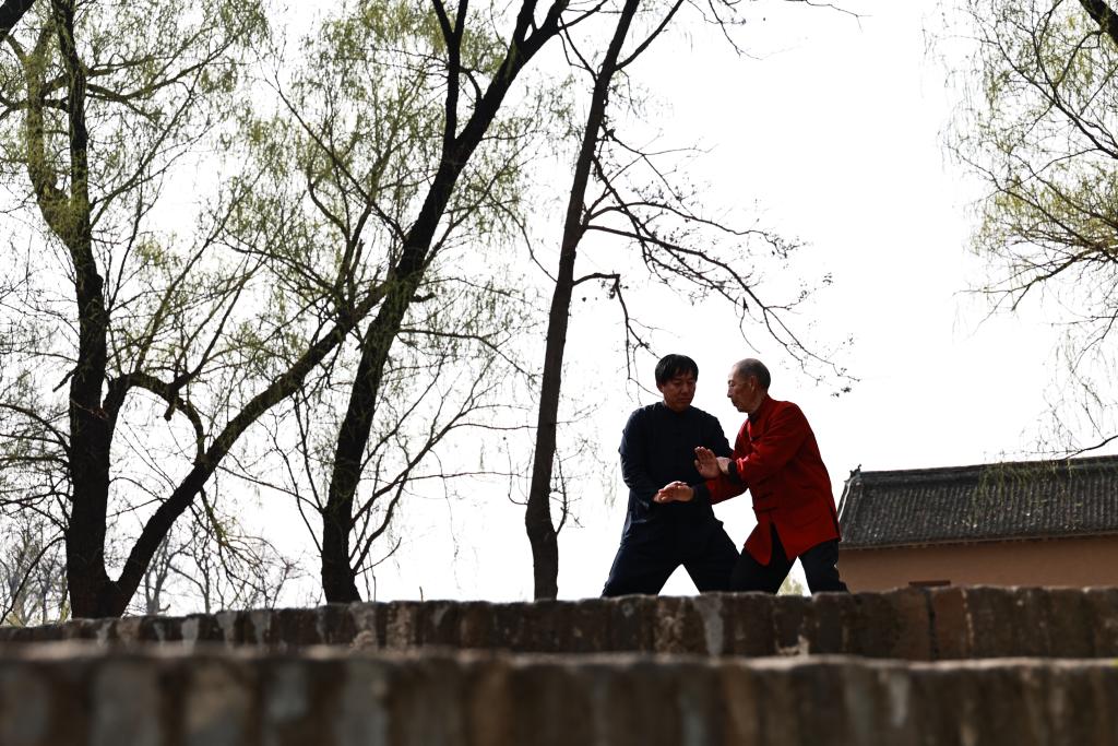 3月19日,拳师在陈家沟村内练拳。新华社记者 任卓如 摄