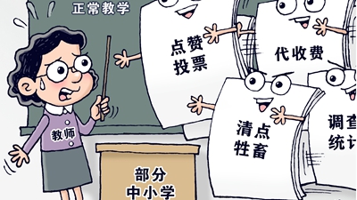 人數(shù)不夠教師來湊。主責主業(yè)成“副業(yè)”,工作負擔蹭蹭漲,讓教師苦不堪言。教師的時間都用在“副業(yè)”上了,哪還有時間教書育人?為教師減負,要減掉的正是那些教師不應承擔、與教育教學無關(guān)的事項,既要“治標”,也要“治本”。