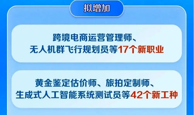 近日,人社部宣布擬新增跨境電商運營管理師、無人機群飛行規(guī)劃員等17個新職業(yè),以及生成式人工智能系統(tǒng)測試員、睡眠健康管理師等42個新工種。這些新職業(yè)、新工種既是產(chǎn)業(yè)變革的縮影,也是對社會高質(zhì)量發(fā)展需求的生動回應。新職業(yè)持續(xù)涌現(xiàn),開啟了時代創(chuàng)造的無限可能。面對職業(yè)選擇,不少年輕人主動擁抱變化,抓住新賽道。