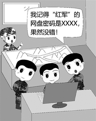 ????演練結束,這名文書坦言,他早就知道對方的網盤密碼。原來,此前,各營文書為了便于工作交流,有時會使用網盤傳輸或分享文件,一些網盤用戶名和密碼不少人都知道。這次演練前,“藍軍”營文書在用網盤調取查閱資料時,無意中在對方網盤中發(fā)現(xiàn)了秘密。