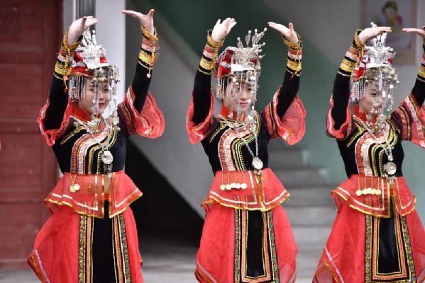 ????畬族歌舞團(tuán)表演的舞蹈《鳳冠銀冠》。楊龍坤 攝