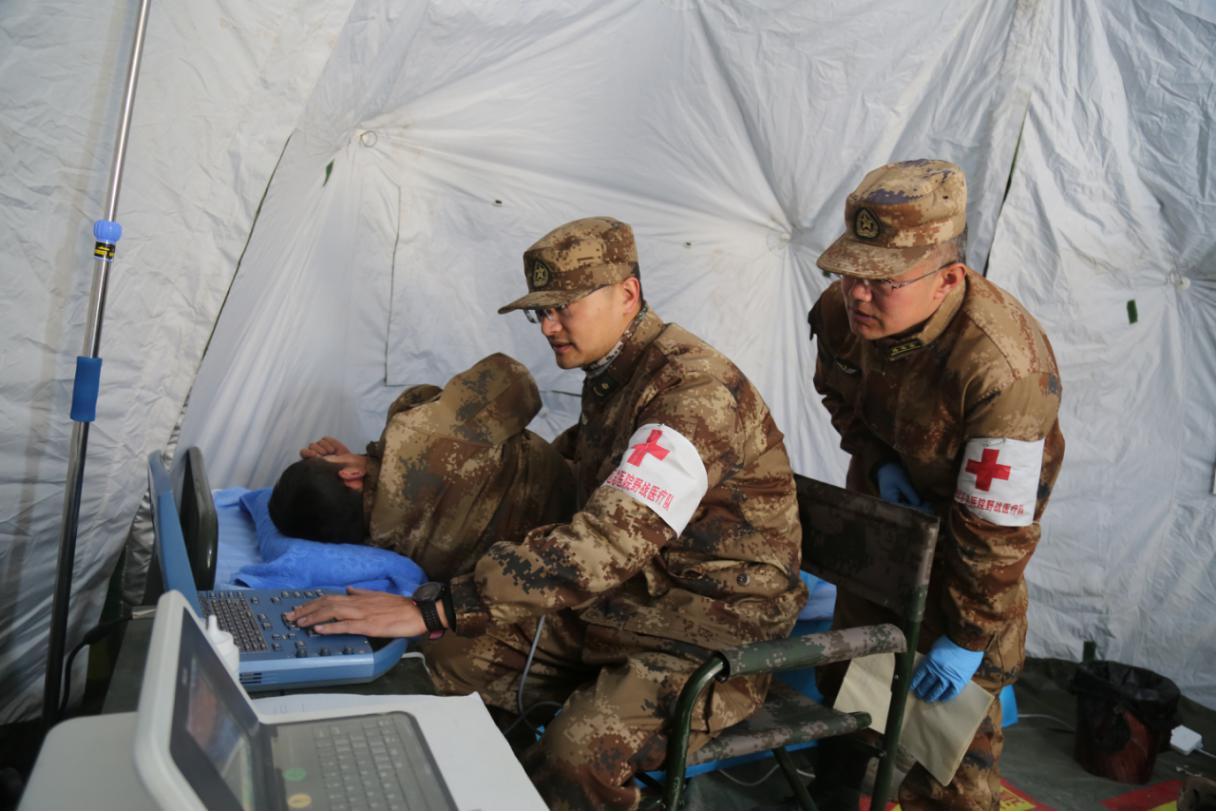 ????醫(yī)療隊(duì)員為戰(zhàn)士做B超