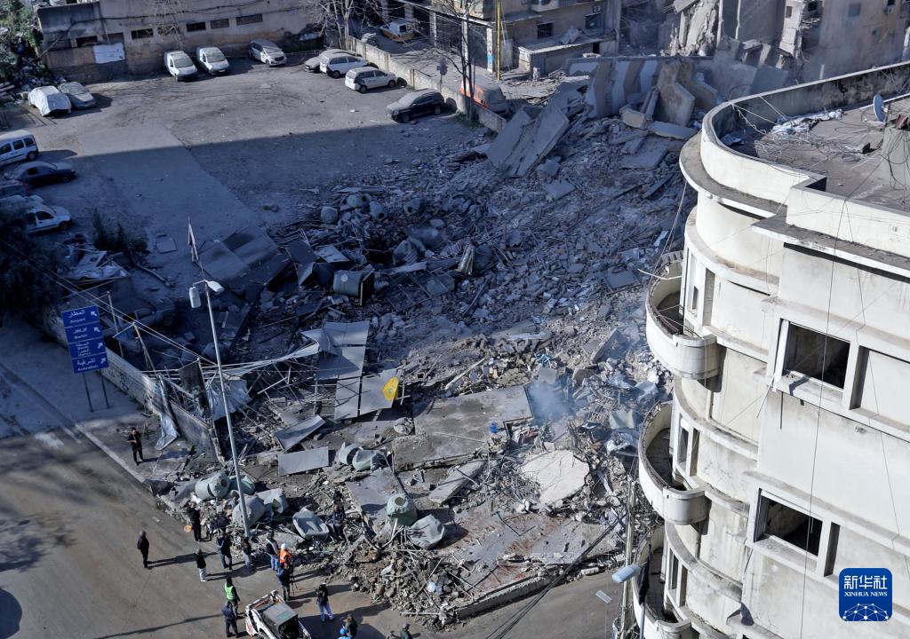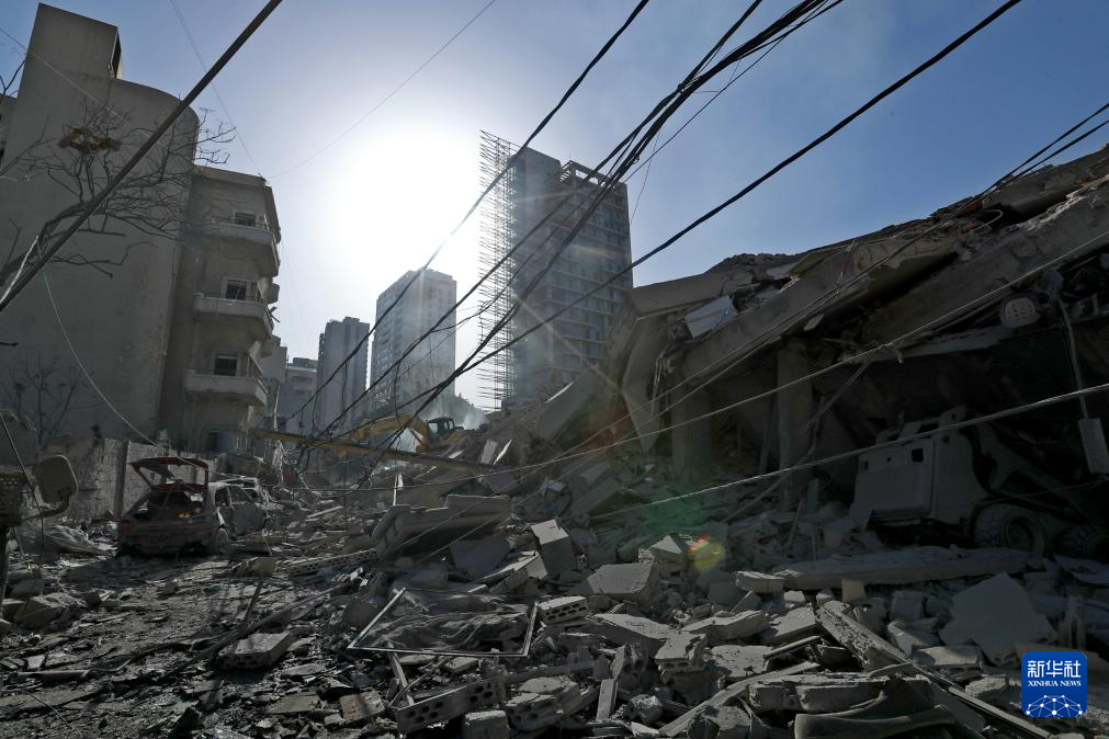 这是3月18日在黎巴嫩首都贝鲁特拍摄的在以色列空袭中损毁的建筑。