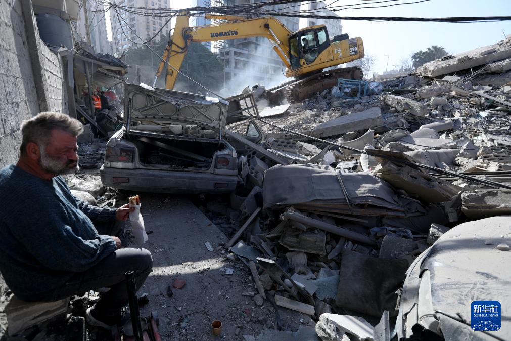 这是3月18日在黎巴嫩首都贝鲁特拍摄的在以色列空袭中损毁的建筑和车辆。