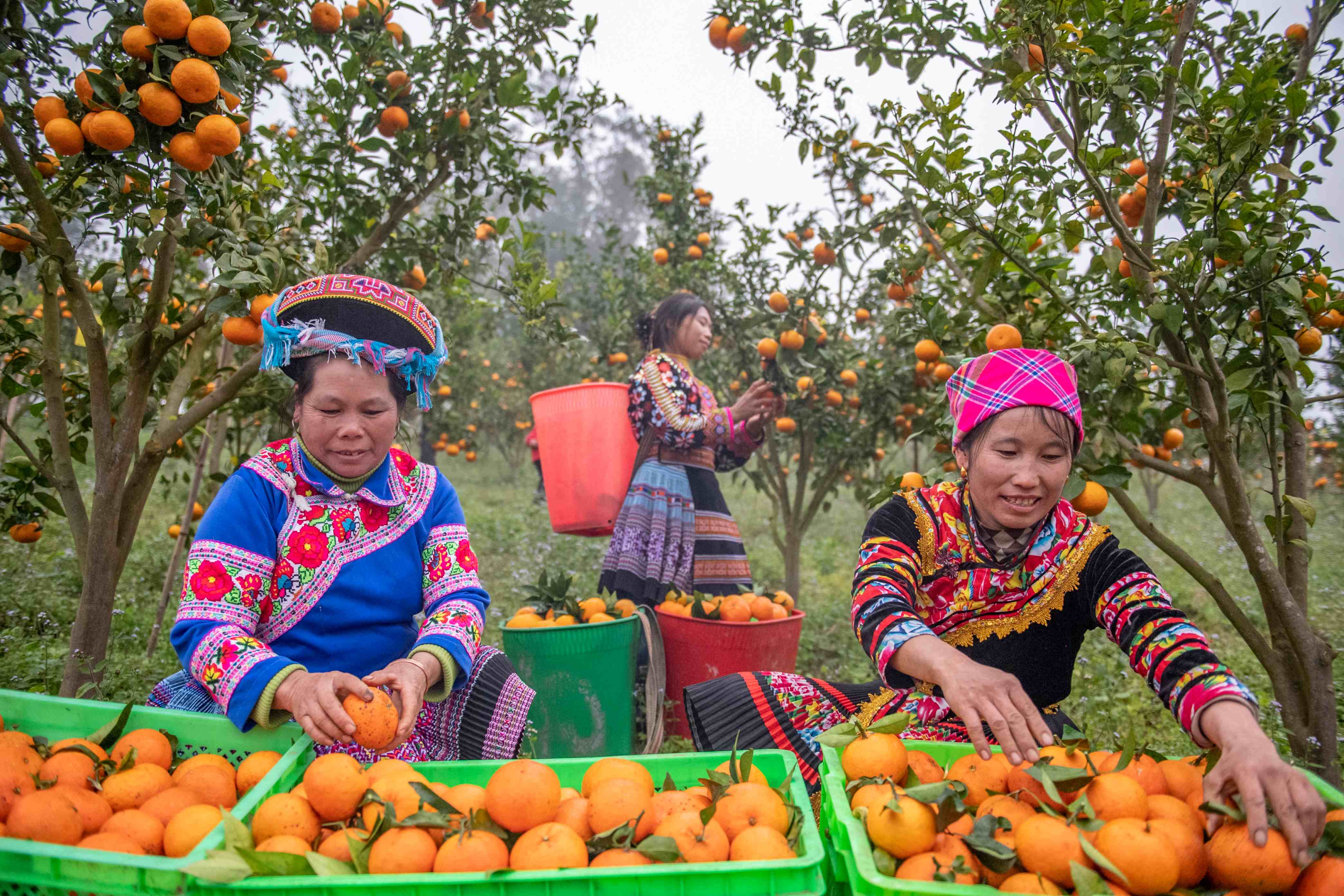 冬日里,云南省文山州馬關(guān)縣都龍鎮(zhèn)的橘園基地里,飽滿的橘子掛滿枝頭,果農(nóng)們喜笑顏開,有條不紊地采摘、分揀、打包,一派豐收景象。