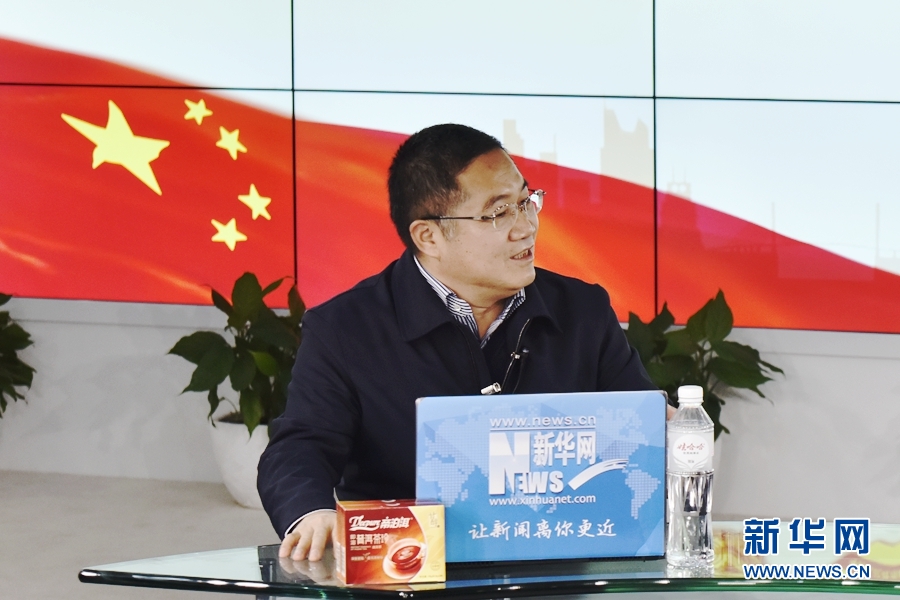 2016年3月12日,全國人大代表、正邦集團(tuán)董事局主席、總裁林印孫做客新華網(wǎng)兩會訪談直播間。圖為林印孫在回答主持人提問。新華網(wǎng) 郭小天 攝