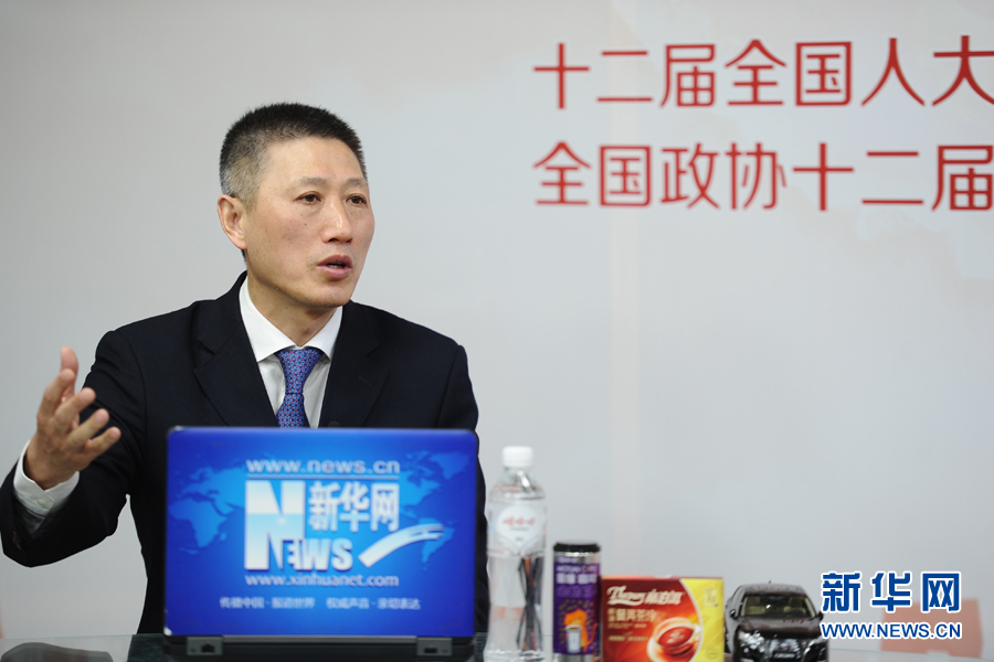 ??? 2016年3月13日,全國人大代表,煙臺張?jiān)F咸厌劸乒煞萦邢薰究偨?jīng)理周洪江做客新華網(wǎng)兩會訪談。圖為周洪江在訪談現(xiàn)場。新華網(wǎng) 盧志佳 攝