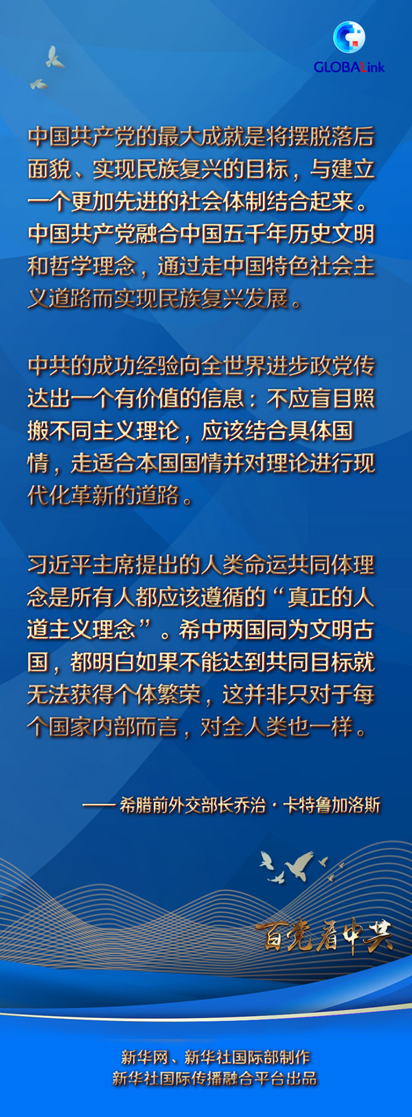 在中共百年華誕之際,卡特魯加洛斯向中國(guó)共產(chǎn)黨和中國(guó)人民送上祝福:“我相信中國(guó)人民取得的這些矚目成就還將繼續(xù)下去,相信中國(guó)共產(chǎn)黨的下一個(gè)百年能給中國(guó)人民帶來(lái)更加光明和美好的未來(lái)?!?/p>
