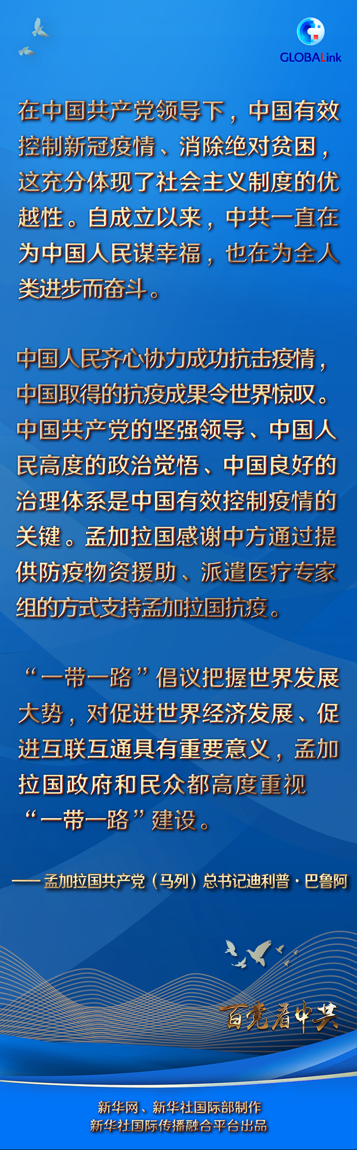 新華社達(dá)卡6月14日電 孟加拉國共產(chǎn)黨(馬列)總書記迪利普·巴魯阿日前在達(dá)卡接受新華社記者專訪時說,在中國共產(chǎn)黨領(lǐng)導(dǎo)下,中國有效控制新冠疫情、消除絕對貧困,這充分體現(xiàn)了社會主義制度的優(yōu)越性。自成立以來,中共一直在為中國人民謀幸福,也在為全人類進(jìn)步而奮斗。
